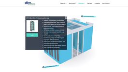 Mit dem Relaunch wurden Inhalt und Struktur der Homepage aktualisiert und an die Lösungs- und Anwendungsbereiche der dtm group angepasst. Besonders interessant sind der neue Online-Katalog sowie die interaktiven 3D-Visualisierungen.