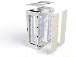 Die Datenschränke sind modular aufgebaut und erlauben eine Tiefenerweiterung von 270 bis 830 Millimeter auf maximal 1.430 Millimeter. Der modulare Ansatz erleichtert Transport, Aufbau und Installation, da die Datenschränke in zwei getrennte Systemblöcke geteilt werden können. Selbst in enge Räumlichkeiten mit kleinsten Durchgängen lassen sich die beiden Systemteile damit mühelos einbringen und zu einem geschlossenen und staubdichten System aufbauen.