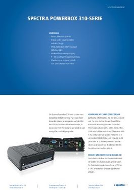 Aktuell kann man zwischen den Serien Spectra PowerBox 300 für Intel CPUs der 6. Generation und Spectra PowerBox 310 für Intel CPUs der 8. Generation wählen. Die nächste Serie für Intel CPUs der 12. Generation, die Spectra PowerBox 320, kommt in den nächsten Wochen auf den Markt. Bei allen Generationen kann man zwischen Core‐i3/i5/i7 Prozessoren wählen, um die CPU Leistung auf die Anforderung anzupassen. Alle CPUs sind sehr stromsparend und haben einen niedrigen TPD Wert von nur 15 Watt.