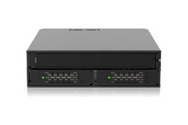 Das kompakte Design des Konzeptprodukts CP141 bietet Platz für zwei U.2/U.3 NVMe-SSDs mit einer Höhe von 7 bis 15 mm und ein optisches Slim-Laufwerk in einem einzigen 5,25 Zoll Laufwerksschacht. Diese Konfiguration ist ideal für räumlich eingeschränkte Umgebungen wie Powerhouse-PCs, tragbare militärische Workstations und Rackmount- Industrie-PCs.