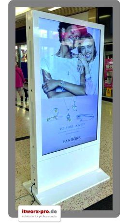 Itworx-pro GmbH: LionDATA 65 Zoll Digital Signage Stele mit beidseitigem Bildschirm für Einkaufszentrum in Diepholz