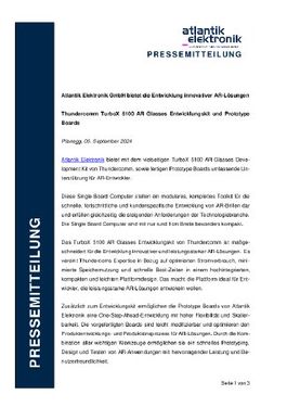 Planegg, 05.09.2024 (PresseBox) - Atlantik Elektronik bietet mit dem vielseitigen TurboX 5100 AR Glasses Deve-lopment Kit von Thundercomm, sowie fertigen Prototype Boards umfassende Unterstützung für AR-Entwickler.