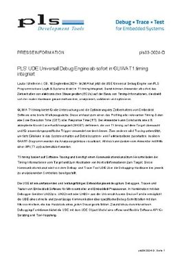 - Deutlicher Effizienzgewinn durch reibungslose und einfache Integration der PLS UDE Universal Debug Engine als Kommunikationsschnittstelle zu T1.timing.