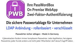 Multi-Faktor-Authentifizierung (MFA): Für zusätzlichen Schutz bietet die PassWordBox die Integration von MFA, was den Sicherheitsstandard für den Zugang zu Passwörtern erhöht.