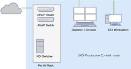 Um Ihre AV-over-IP-Produktionskapazitäten weiter auszubauen, können Sie damit beginnen, weitere NDI-fähige Geräte in Ihrem Kontrollraum hinzuzufügen, z. B. einen CG-Generator, einen NDI-Recorder, weitere NDI-Arbeitsstationen für die Bearbeitung und Postproduktion sowie eine einfache Workstation für die Einrichtung und Verwaltung der verschiedenen angeschlossenen Geräte in unserem Workflow.