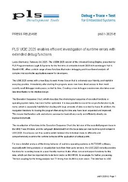 Lauta, Germany, 04.02.2025 (PresseBox) - The UDE® 2025 version of the Universal Debug Engine, presented by PLS Programmierbare Logik & Systeme for the first time at embedded world 2025 in Nuremberg in Hall 4, Stand 4-310, offers a whole range of new functions that make debugging and trace-based analysis of complex microcontroller applications easier for developers.