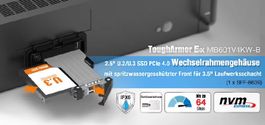 - Herausnehmbares Laufwerkstray für einfache Wartung und Hot-Swap (NVMe-Host muss Hot-Swap unterstützen)
