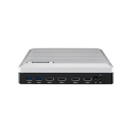 Für Digital Signage Installationen mit mehreren Displays stellt das System vier HDMI 2.0 Ausgänge bereit. Einer dieser Ausgänge unterstützt 8K-Auflösung. Dadurch lassen sich großformatige Anzeigen, Menüboards, Videowände oder Informationssysteme mit hoher Bildschärfe betreiben. Mehrere 4K-Displays können synchron angesteuert werden, was besonders für Video Walls und zusammenhängende Markeninszenierungen relevant ist.