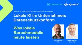 Ostfildern, 23.04.2026 (PresseBox) - Die agorum® Software GmbH und der On-Premises-KI-Spezialist onprem.ai veranstalten am 19. Mai 2026 um 10:00 Uhr ein gemeinsames Online-Webinar zum Thema datenschutzkonforme Künstliche Intelligenz im Unternehmen. In 60 Minuten zeigen beide Unternehmen, wie lokale Sprachmodelle in eine bestehende ECM-Infrastruktur integriert werden können – ohne dass Unternehmensdaten die eigene Infrastruktur verlassen. Die Teilnahme ist kostenfrei.